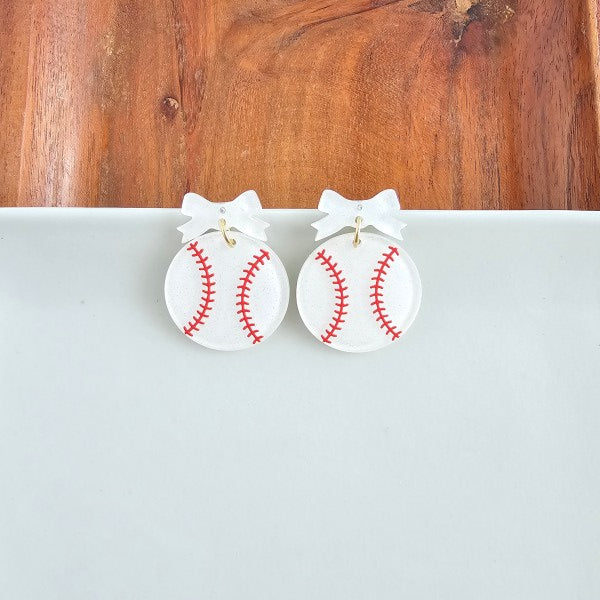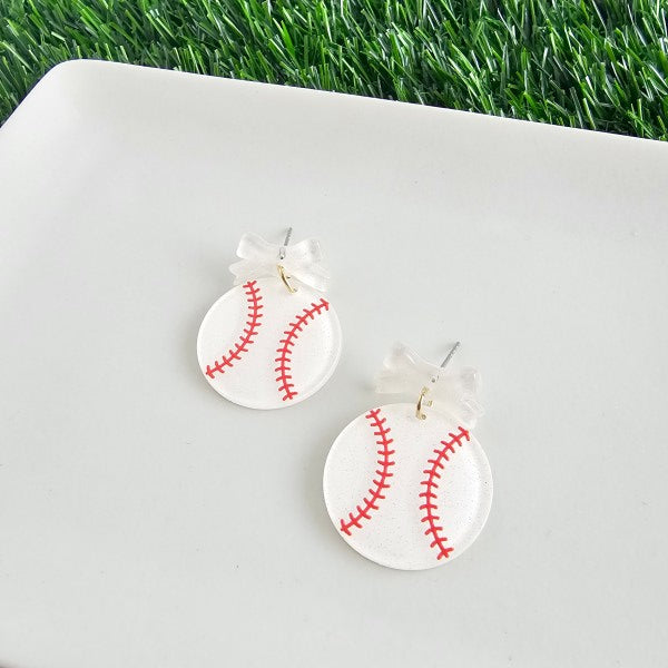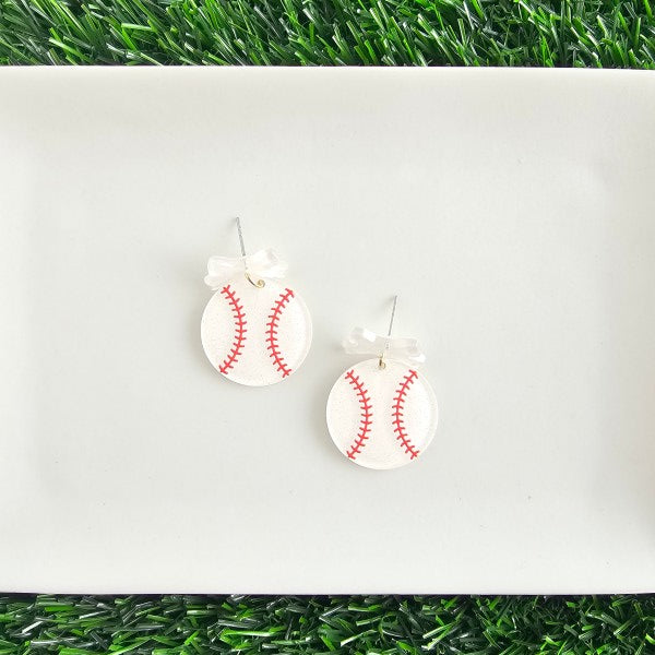 Hit your game day look out of the park with our Game Day Bow Baseball Earrings! Featuring a sweet white bow and a sparkly red-stitched baseball charm, these earrings are the perfect accessory for cheering from the stands or snacking in the shade.