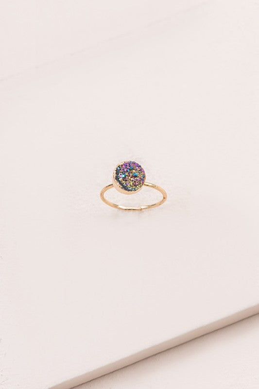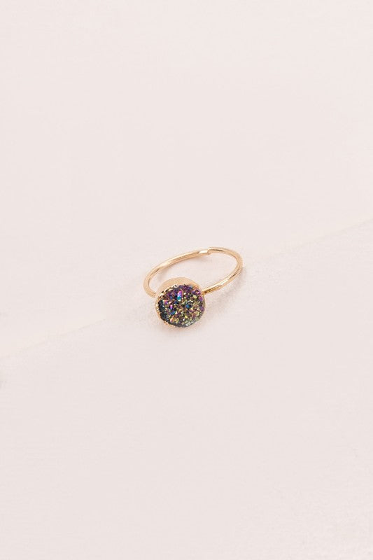 Shine like the shining star you are! Shimmering multicolored druzy stone ring. Perfect as a midi or pinky ring10K gold plateSize 4 ring Pinky and midi style ring